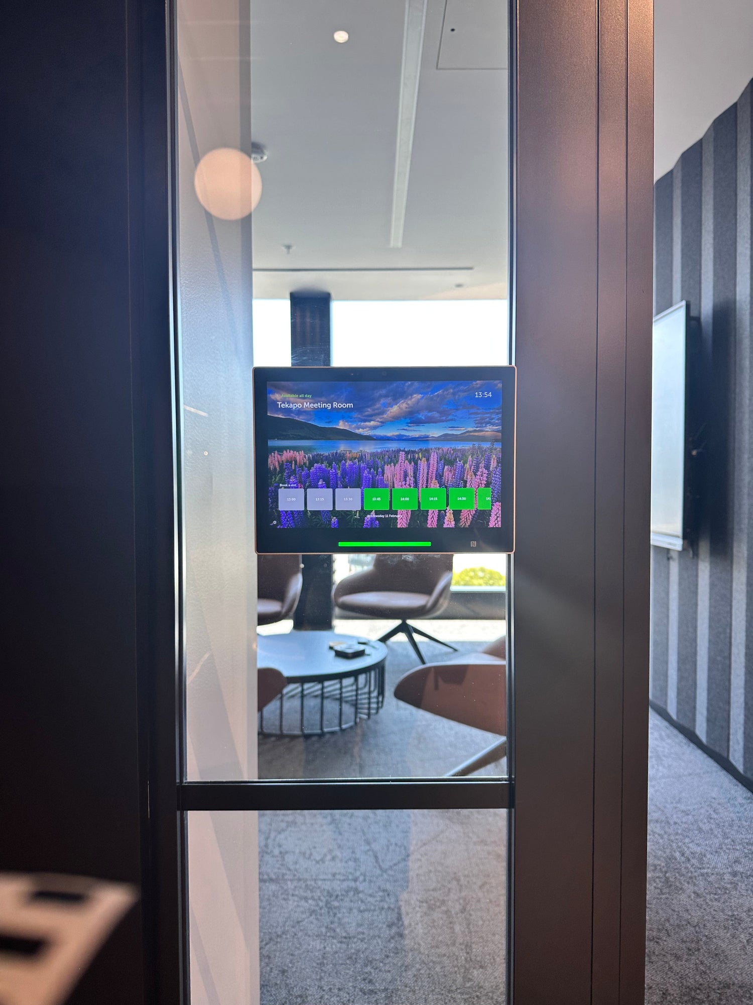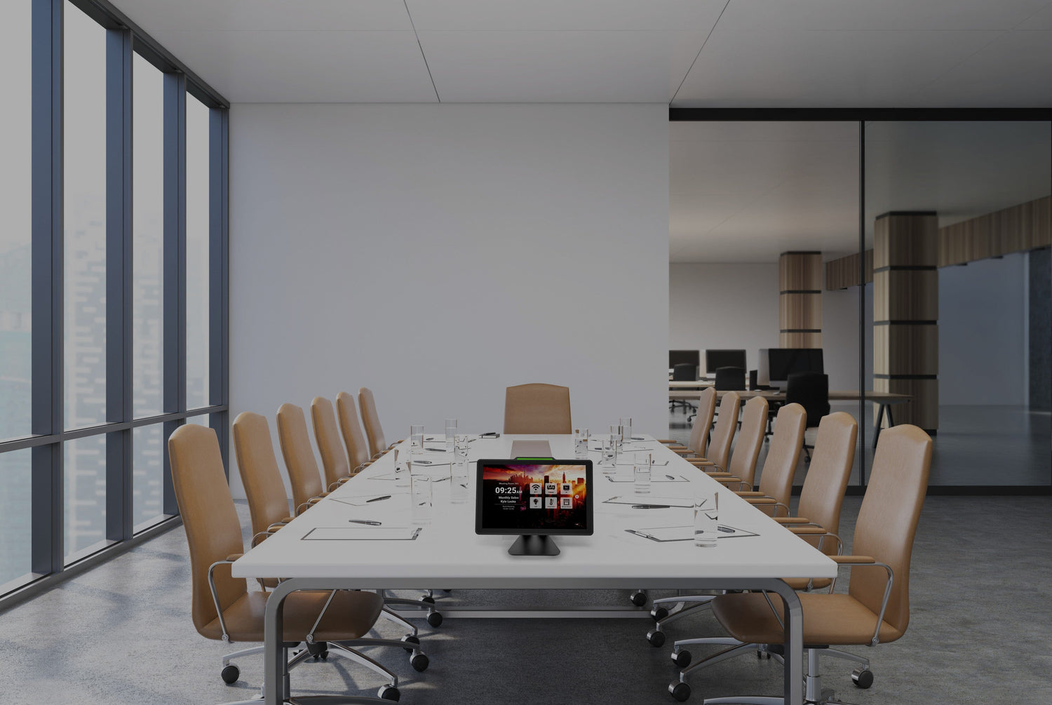 Premium touch panels mounted outside each meeting room display real-time availability, enable on-the-spot booking, and integrate with your existing calendar system.