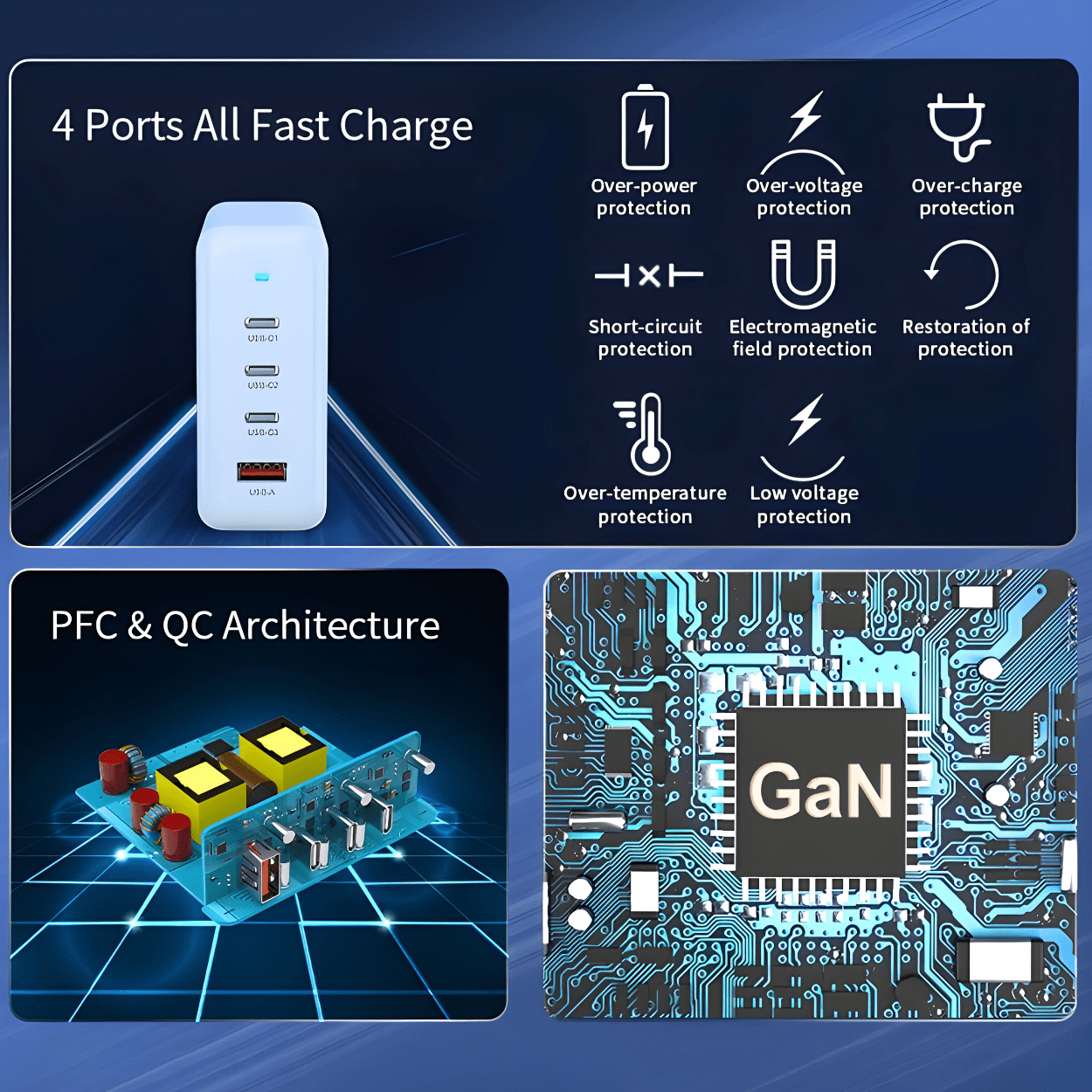 100W 4-Port Multi Charger (GaN USB-C PD 3.0 + USB-A QC 3.0)