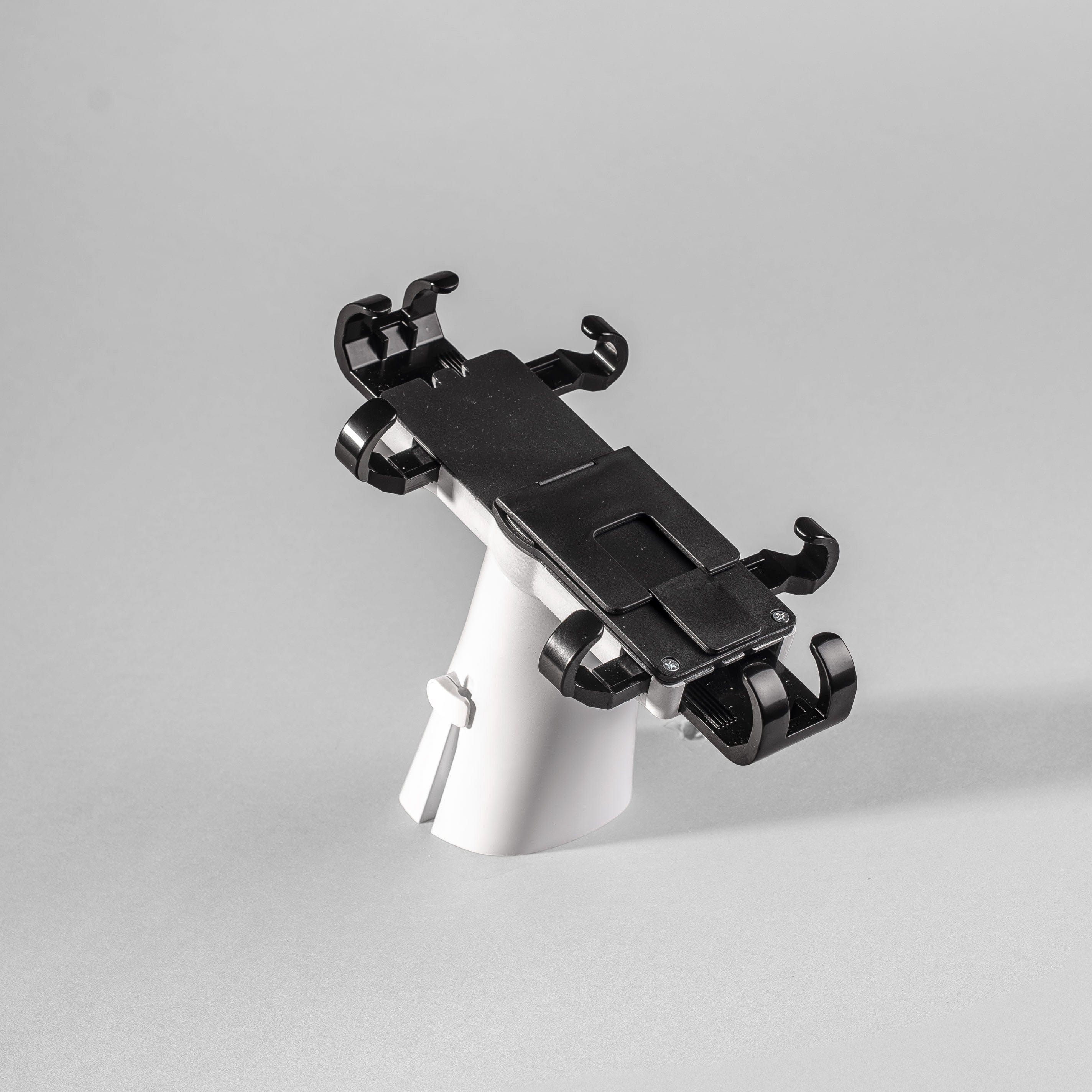 The Fort Knox Phone holder has a robust metal body with a tamperproof key management system, that frustrates and deters aggressive shoplifters.